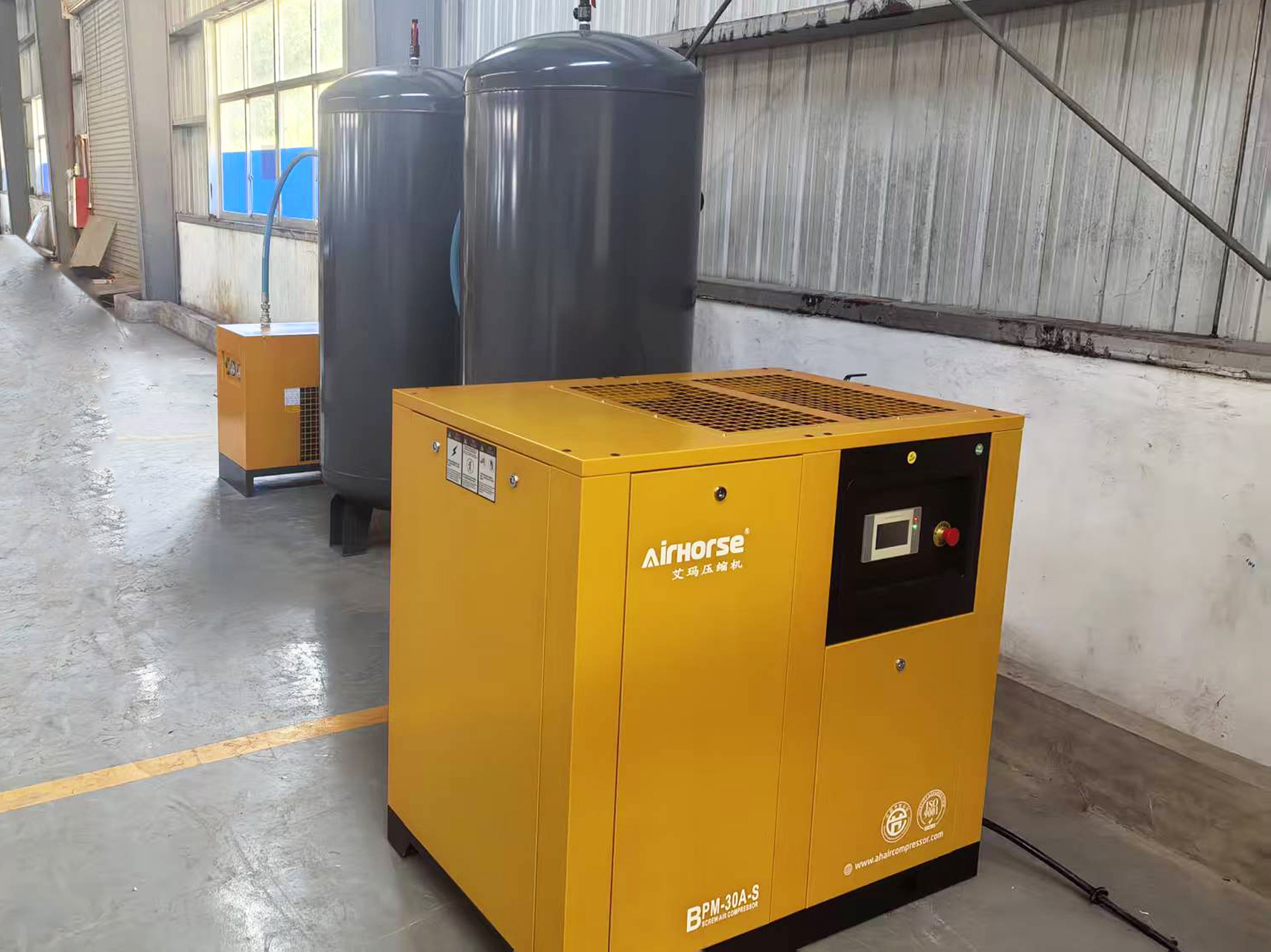Airhorse 22kW Permanent Magnet Variable Frequency Screw Air Compressor achieves on-demand adjustment through a permanent magnet motor and intelligent frequency conversion control: it automatically accelerates when air demand is high to ensure stable pressure and slows down when demand is low to avoid energy waste. After implementation, the electromechanical enterprise experienced on-demand air supply matching, smoother production line rhythms, and significantly improved electricity efficiency.