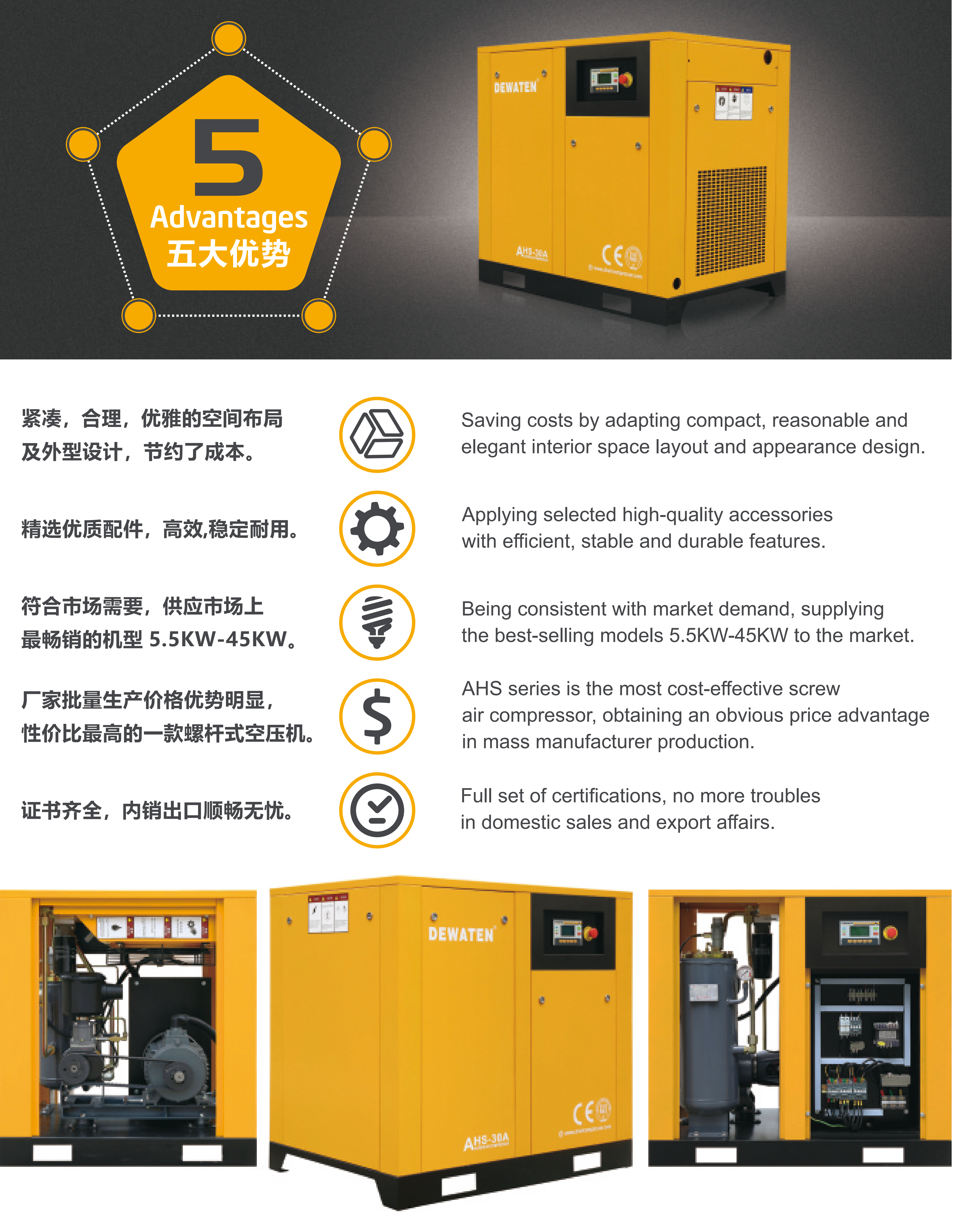 | AIRHORSE-DEWATEN SCREW AIR COMPRESSOR (AHS Direct drive series) | |||||||||