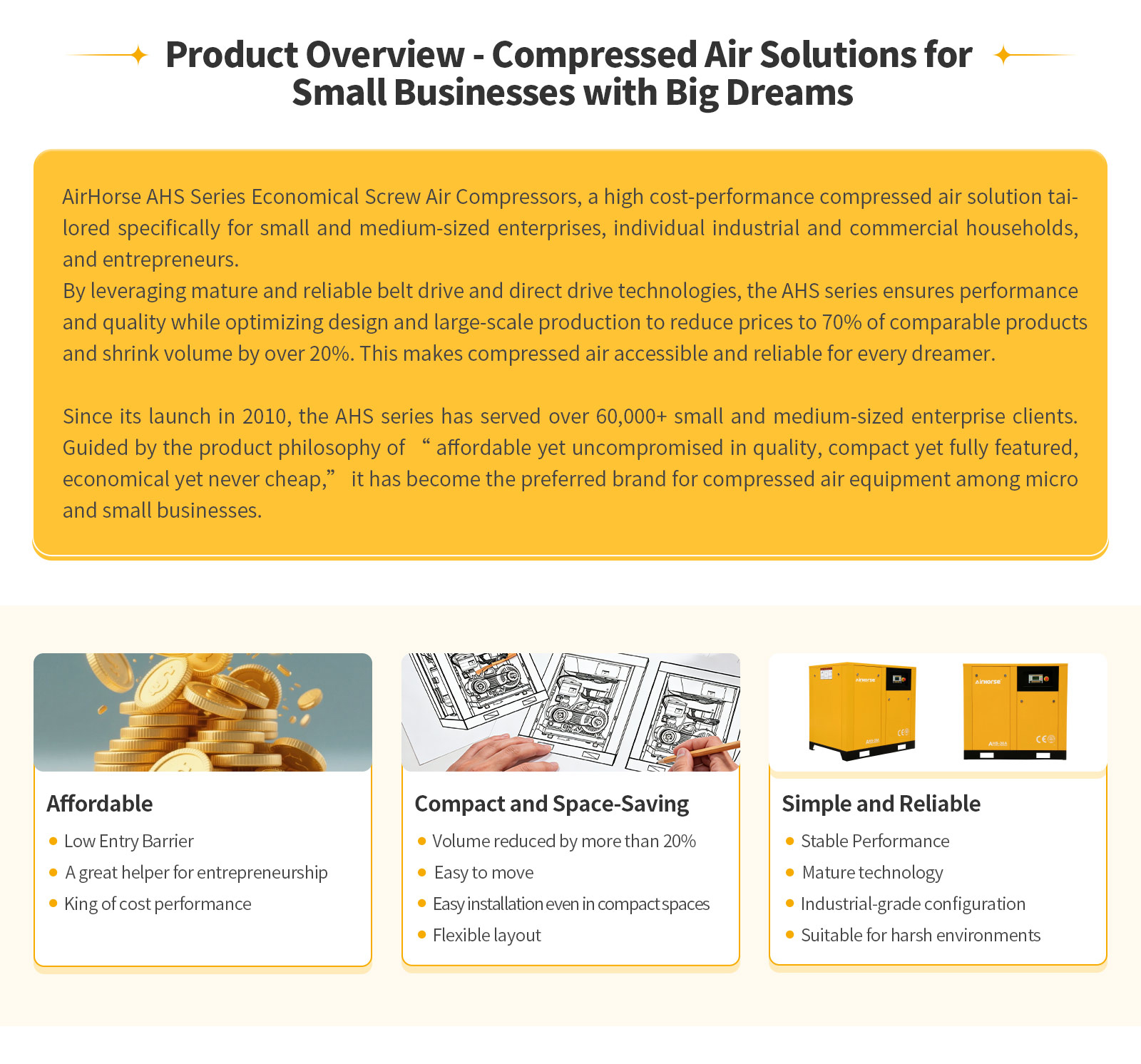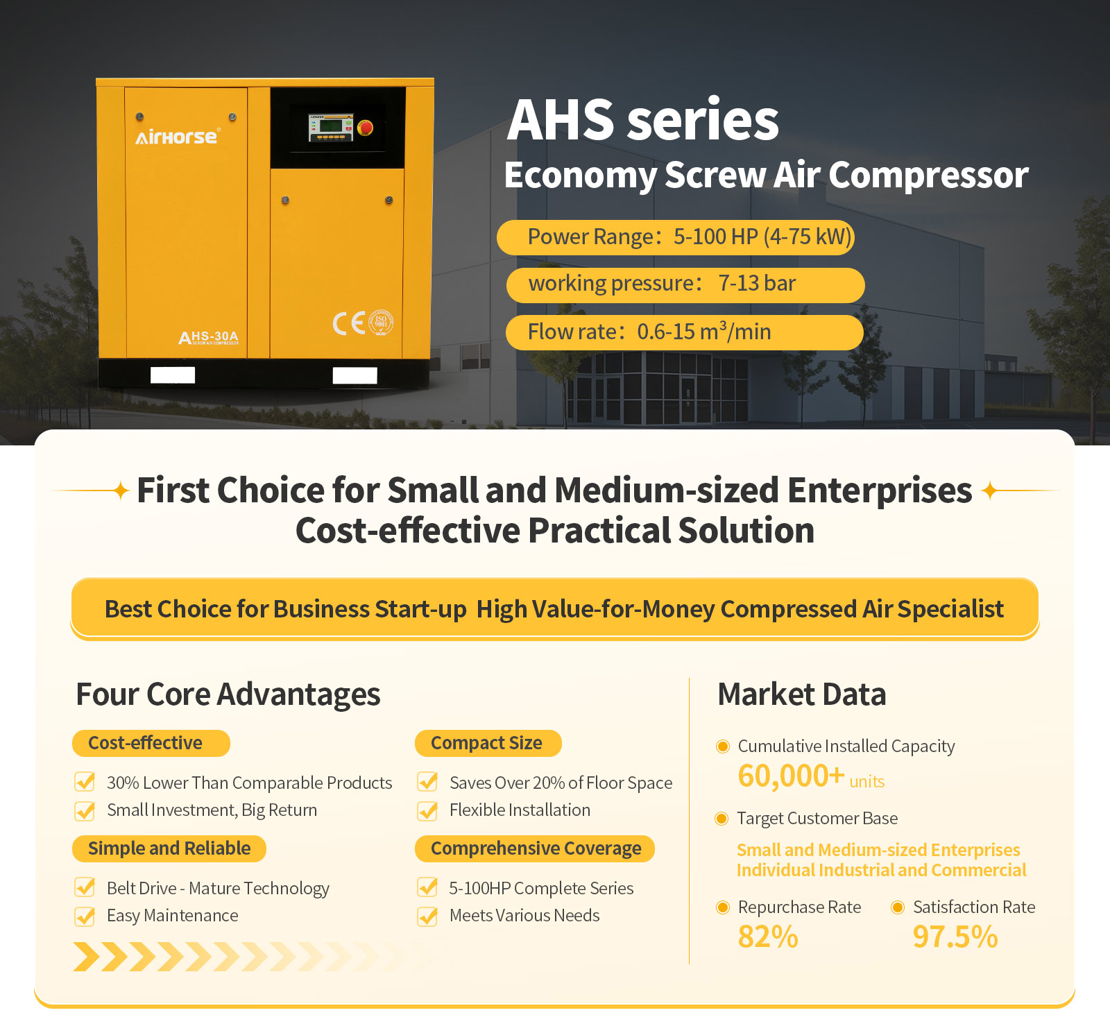 AirHorse is an internationally renowned manufacturer of screw air compressors, please contact us for more information on air compressors. For a long time to provide you with high quality air compression services.