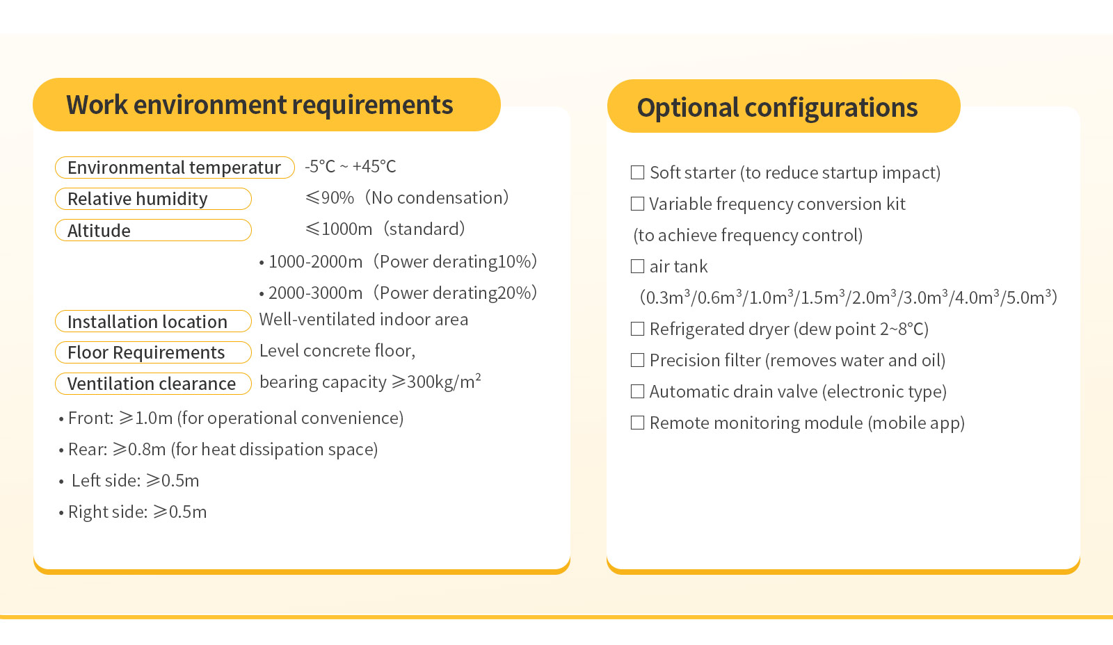 *FRIENDLY REMINDER: The standard specifications of our products are applicable to regions with an altitude below 1,000 meters. For usage environments exceeding 1,000 meters above sea level, please feel free to contact us for customized configurations to ensure optimal equipment performance and operational safety.