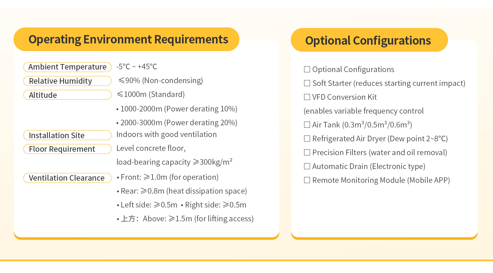 *FRIENDLY REMINDER: The standard specifications of our products are applicable to regions with an altitude below 1,000 meters. For usage environments exceeding 1,000 meters above sea level, please feel free to contact us for customized configurations to ensure optimal equipment performance and operational safety.