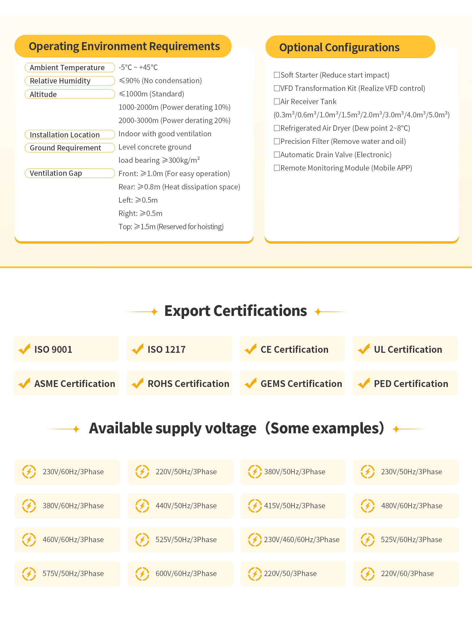 *FRIENDLY REMINDER: The standard specifications of our products are applicable to regions with an altitude below 1,000 meters. For usage environments exceeding 1,000 meters above sea level, please feel free to contact us for customized configurations to ensure optimal equipment performance and operational safety.