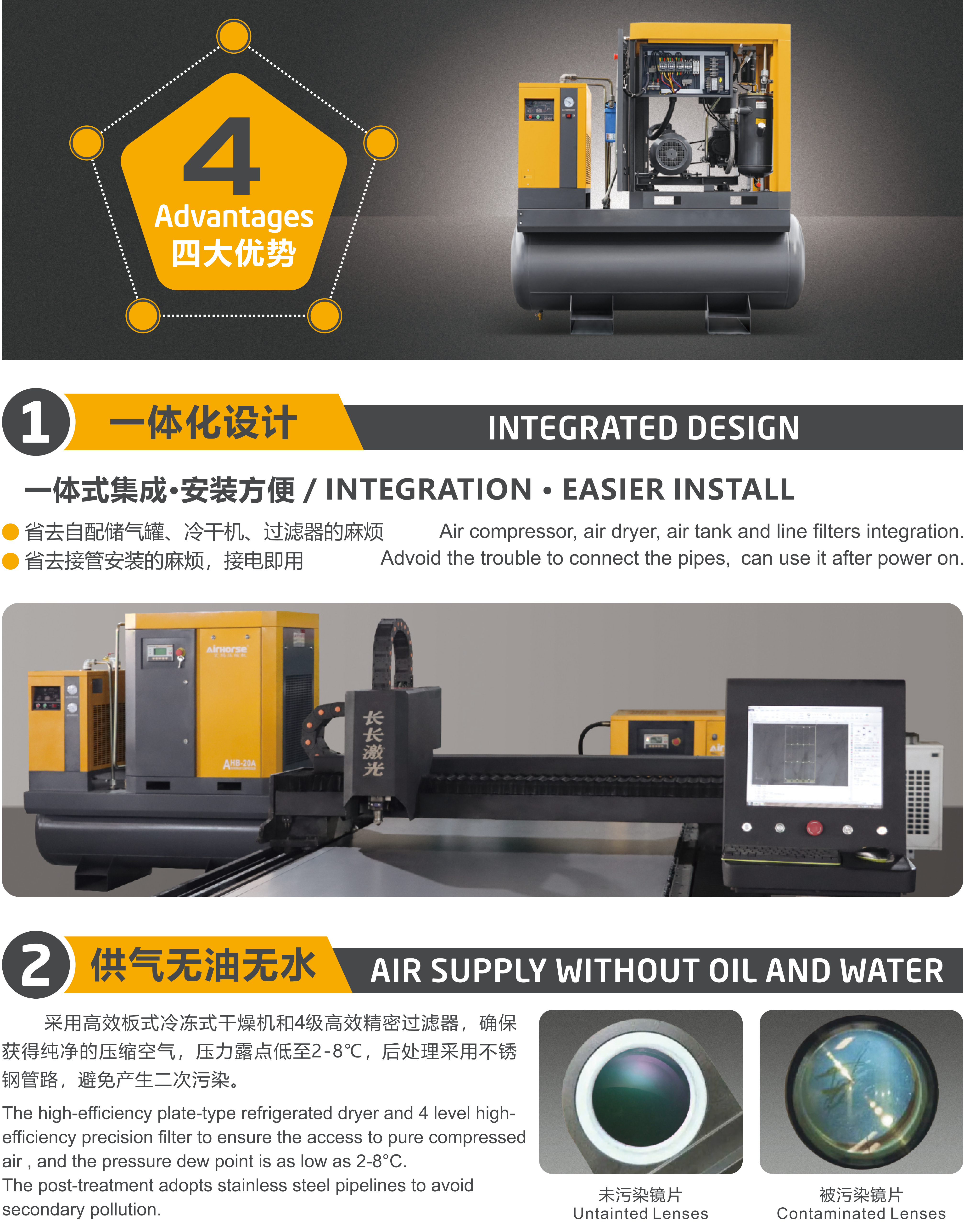 | Airhorse 4-in-1 Laser Cutting Dedicated Screw Air Compressor – Technical Specifications | ||||||
